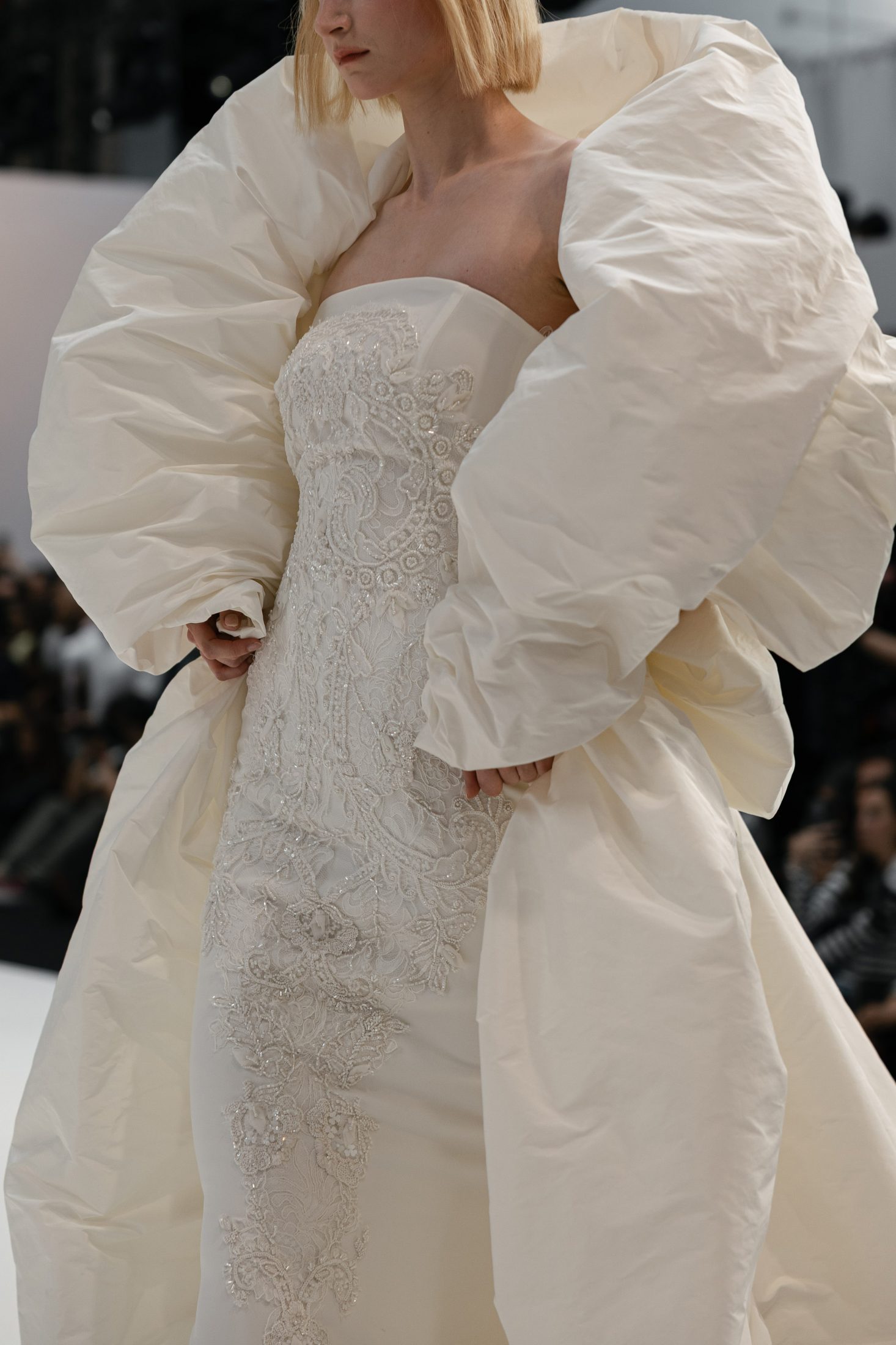 Dramatic silhouettes, oversized embellishment, and gowns spilling with rich texture enveloped New York Bridal Week Spring 25' collections.