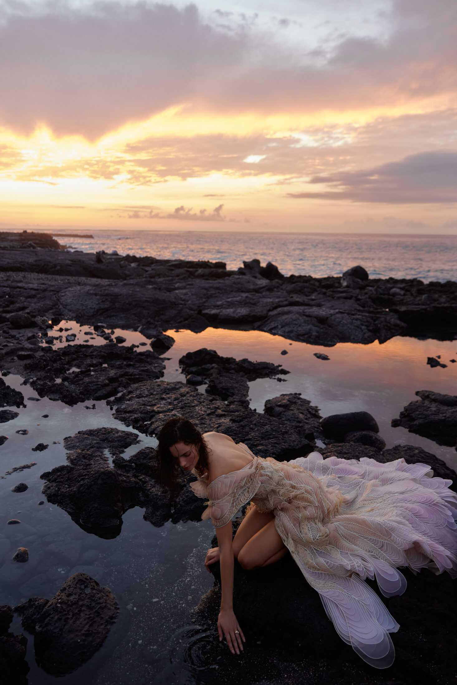 Inspired by our latest editorial, Volcaïca, on the molten shores of Kona Village, Hawaii, we've put together an edit of elevated beach wedding dresses drawing cues from the sea.