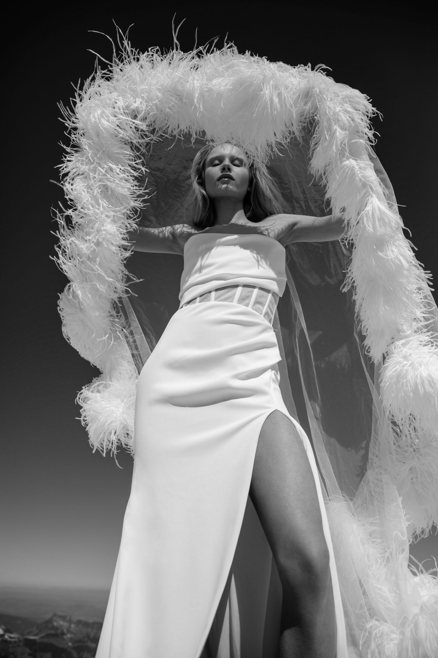 An alpine-inspired collection of winter wedding dresses for Fall 2025, evoking the boldly contrasting formations of snow by Australian design house KYHA.