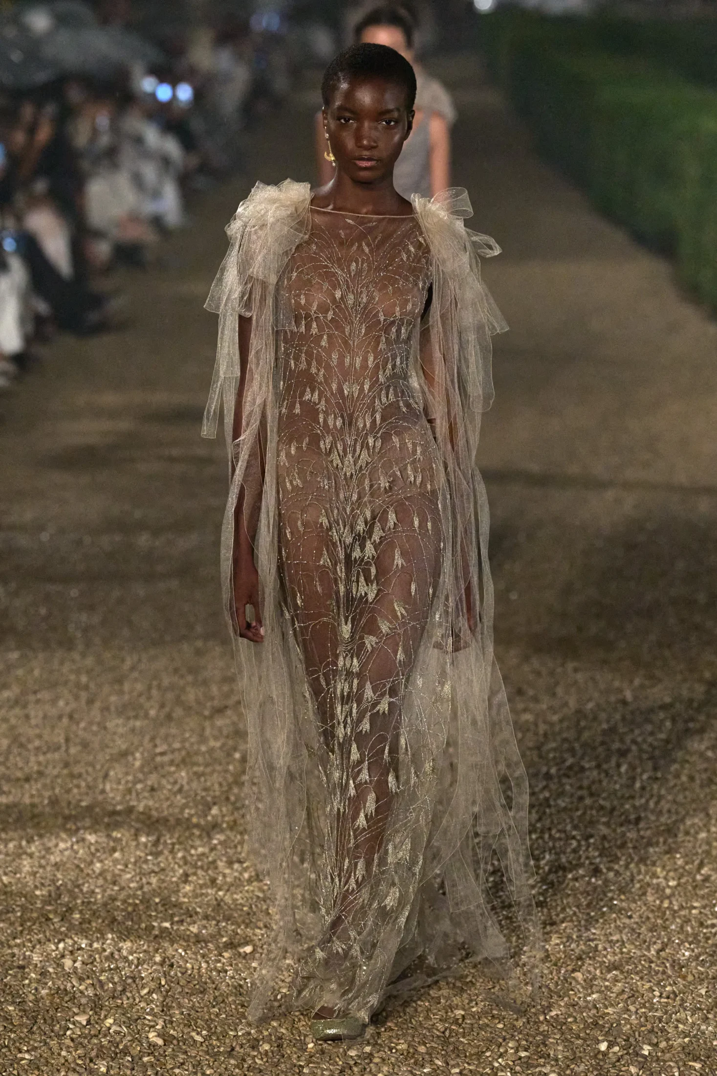 Gowns bathed in gilded light or drenched in embellishment—fringe, lace, velvets, and pleats. Our edit of Couture Spring '25 for black-tie weddings and events.