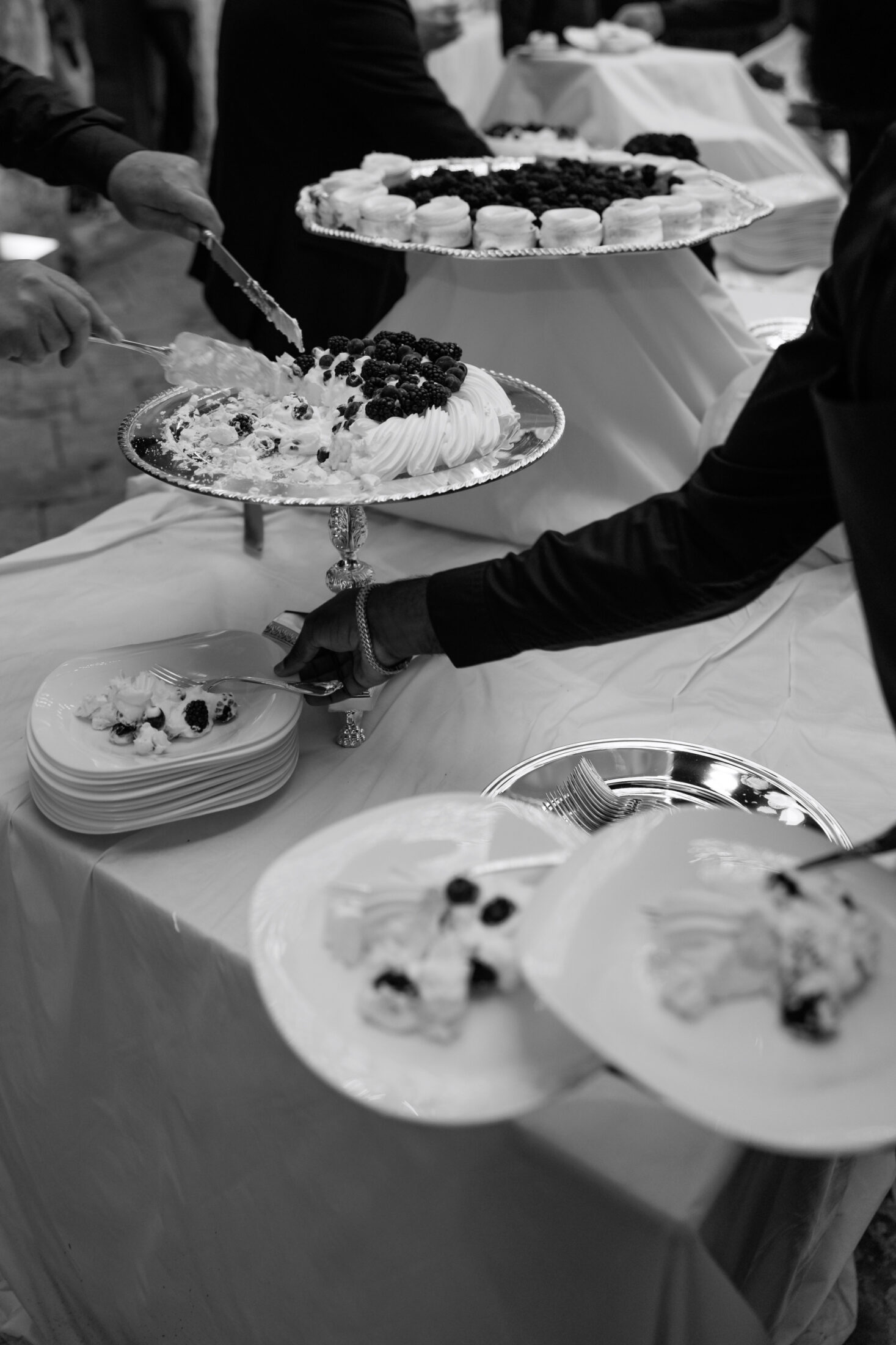 Styled into a culinary work of art Roland’s brought our vision to life creating a tablescape dotted with sculptural reverie. A rhythmic display of small, refined, artful bites. A culmination of shapes and textures into a beautifully tonal Eton mess.