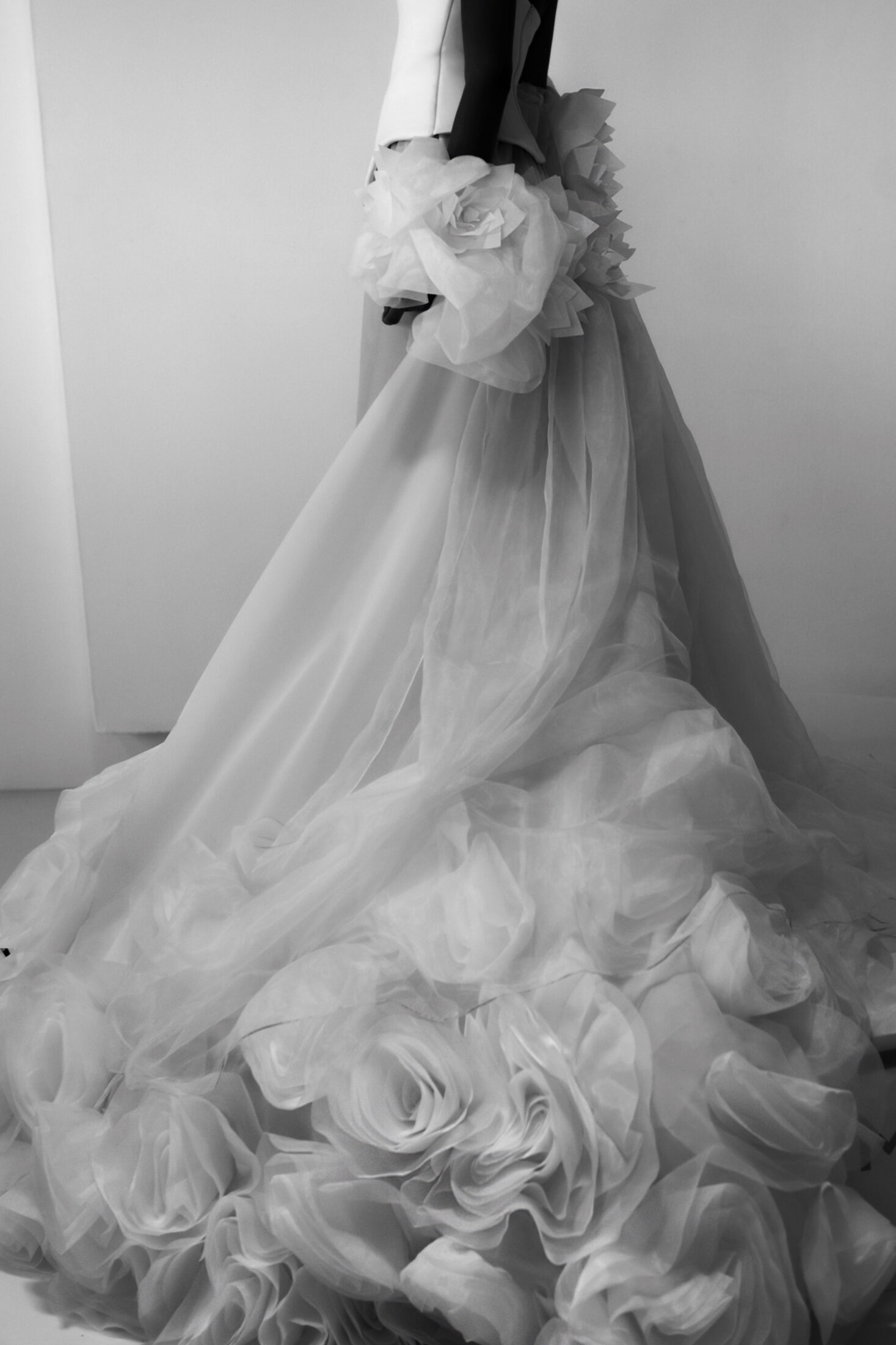 Developing their own fabrics, Istanbul-based Cagteks Bridal merges traditional savoir-faire with innovation, to craft gowns that echo the glacial terrain in Switzerland.