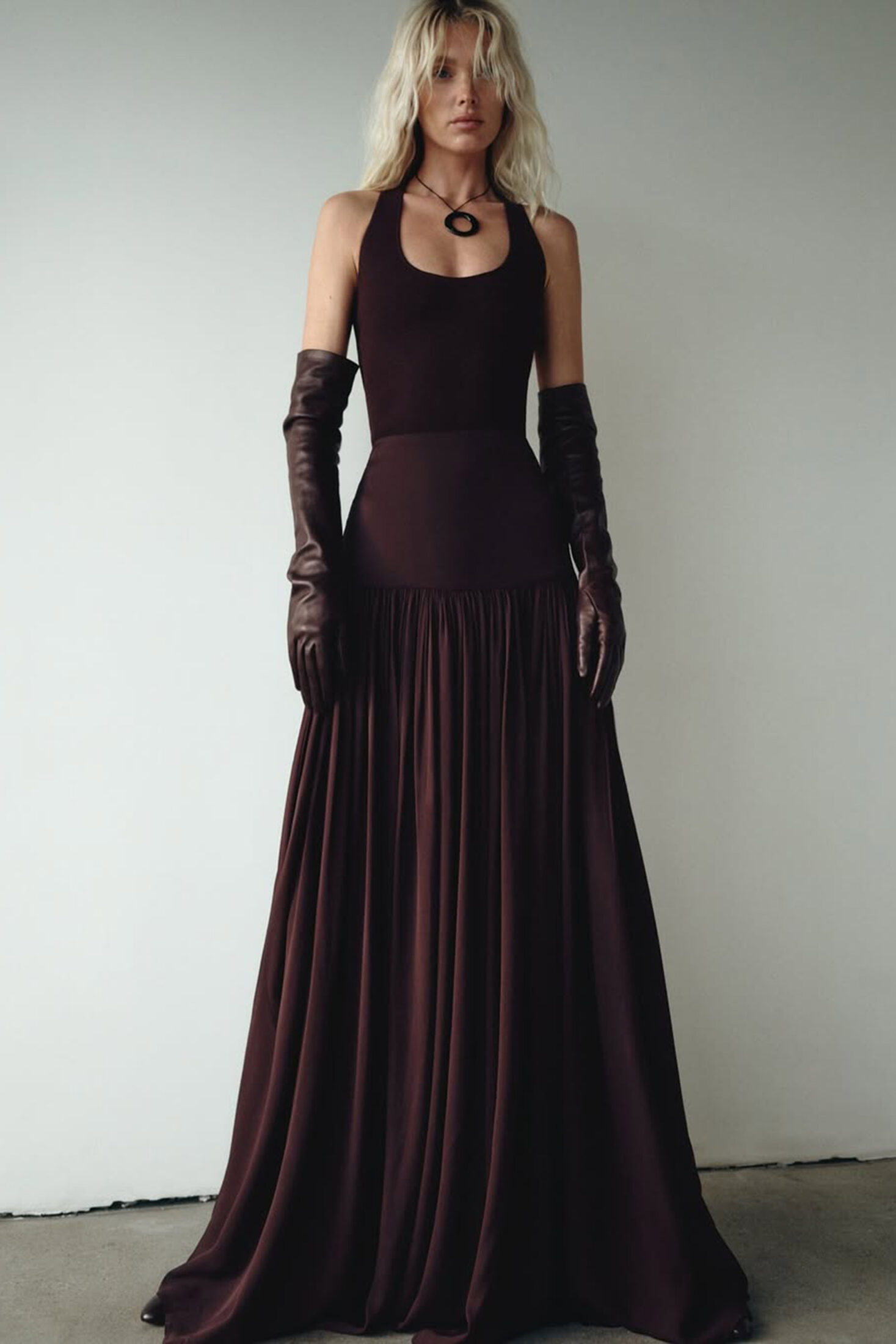 Tracing the line between architecture and emotion, Alyssa Kristin’s Spring 2026 gowns evoke sculptural columns softened by fluid draping, where purity of form meets quiet transformation.